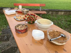 Für das leibliche Wohl und die Organisation mancher Anlässe sorgt unsere Antennengruppe. Die freiwilligen Helferinnen und Helfer treffen sich zwei Mal im Jahr, um alle anstehenden Anlässe zu koordinieren. Sie schneiden Früchte und rühren Käse für das Fondueessen, sie kochen für den Suppentag, und auch für das reichhaltige Buffet am Osterzmorge sind sie besorgt. Beim Kerzenziehen kann man sich dank ihnen zu einem gemütlichen Schwatz bei Kaffee und Kuchen niederlassen. Weitere Anlässe, bei denen wir diese «Heinzelmännchen» antreffen, sind Auffahrt, das Grillieren in Giswil und der Berggottesdienst.
